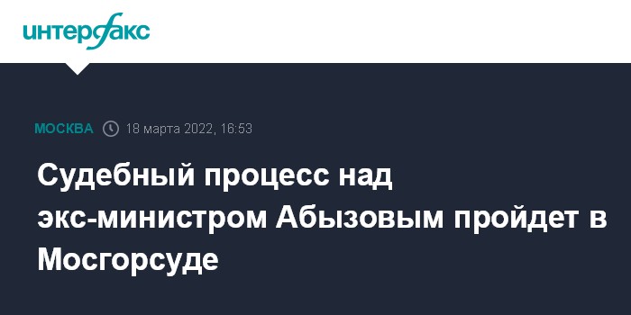 Судебный процесс над экс-министром Абызовым пройдет в Мосгорсуде