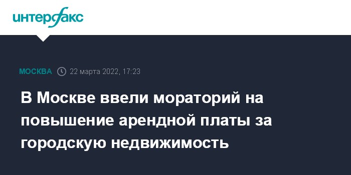 "В соответствии с постановлением: устанавливается мораторий на повышение в 2022 г. ставок арендной платы за земельные участки и объекты нежилого фонда, находящиеся в собственности города Москвы", - говорится в сообщении.