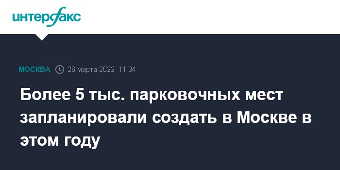"Больше 5 тыс. новых парковочных мест сделает ЦОДД (центр организации дорожного движения - ИФ) в этом году. Новые места появятся (...) в каждом округе", - сказали в ведомстве в субботу.