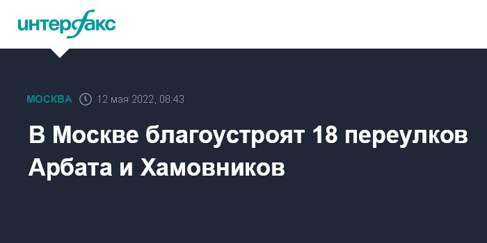 Москва. 12 мая. INTERFAX.RU - Комплекс работ по благоустройству 18 переулков в районах Арбат и Хамовники запланирован на 2022 год, сообщил журналистам в четверг заместитель мэра Москвы Петр Бирюков.