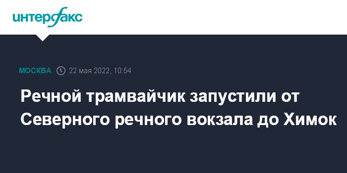 Москва. 22 мая. INTERFAX.RU - От Северного речного вокзала до Химок начал ходить речной трамвайчик, маршрут работает с 8:00 до 19:30, сообщили в воскресенье в департаменте транспорта и развития дорожно-транспортной инфраструктуры столицы.
