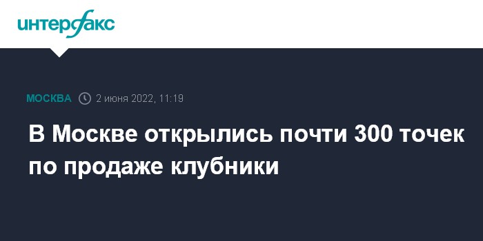 Москва. 2 июня. INTERFAX.RU - В Москве открыли больше 290 точек по продаже клубники, это более чем на 50% больше, чем летом 2021 года, сообщил руководитель городского Департамента торговли и услуг Алексей Немерюк.