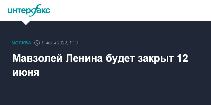 Москва. 9 июня. INTERFAX.RU - Мавзолей Ленина и некрополь у Кремлевской стены будут закрыты для посещения 12 июня, сообщила пресс-служба Федеральной службы охраны.