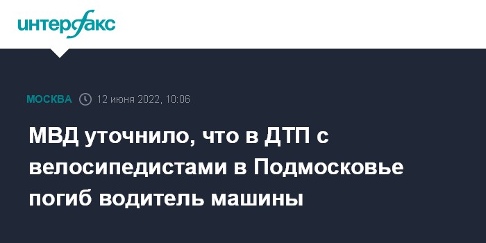 МВД уточнило, что в ДТП с велосипедистами в Подмосковье погиб водитель машины
