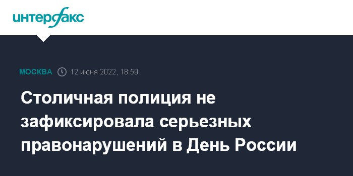 Столичная полиция не зафиксировала серьезных правонарушений в День России