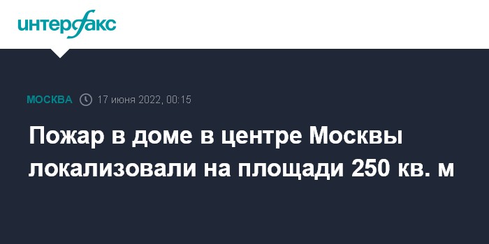 Москва. 17 июня. INTERFAX.RU - Пожар в жилом доме в центре Москвы локализован на площади 250 кв. м, все жильцы эвакуированы, сообщила пресс-служба МЧС РФ.