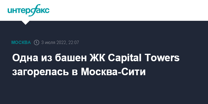 Москва. 3 июля. INTERFAX.RU - Огонь охватил одну из жилых башен в Москва-Сити, сообщил в воскресенье "Интерфаксу" информированный источник.