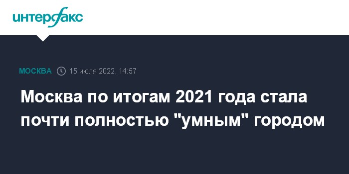 Москва по итогам 2021 года стала почти полностью "умным" городом