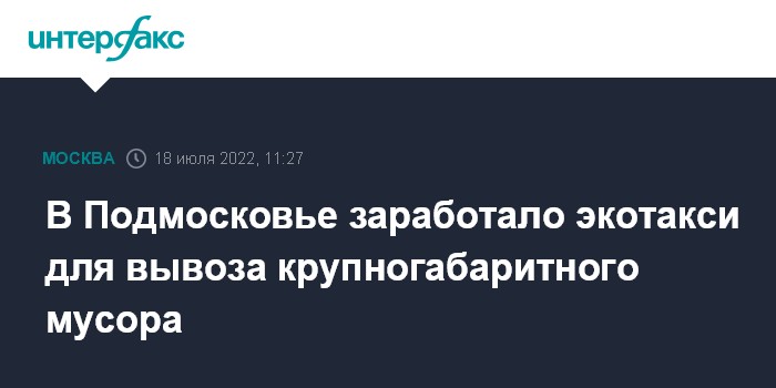 Москва. 18 июля. INTERFAX.RU - Министерство жилищно-коммунального хозяйства Московской области запустило на территории всего региона проект "Экотакси" по вывозу мебели, бытовой техники и других крупногабаритных отходов, сообщает пресс-служба ведомства.
