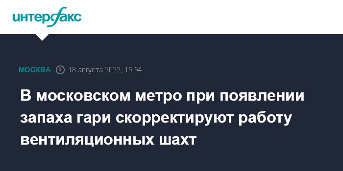 В московском метро при появлении запаха гари скорректируют работу вентиляционных шахт