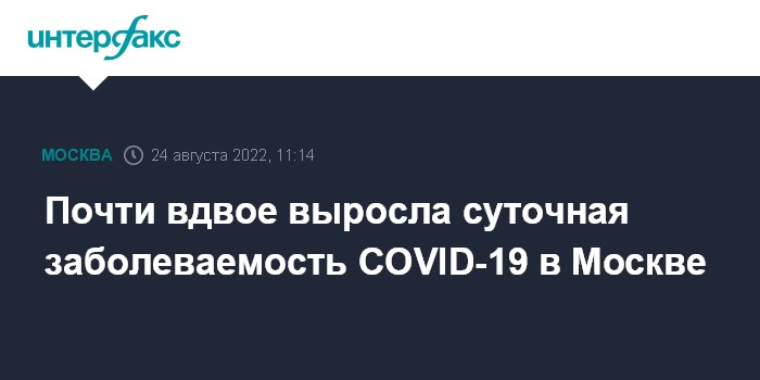 Москва. 24 августа. INTERFAX.RU - Около 9,4 тысячи случаев COVID-19 выявили в Москве за последние сутки, это почти вдвое больше, чем накануне, следует из данных портала "Стопкоронавирус.рф".
