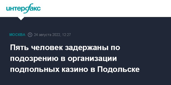 Москва. 24 августа. INTERFAX.RU - В Подмосковье, в Подольске полиция ликвидировала два подпольных игорных клуба, по подозрению в их организации задержаны пять жителей региона, сообщила официальный представитель МВД России Ирина Волк.