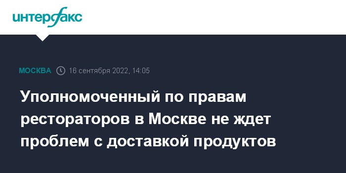 Уполномоченный по правам рестораторов в Москве не ждет проблем с доставкой продуктов