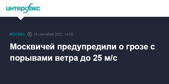 "Сегодня после 21:00 и до конца суток 19 сентября в столице ожидаются дождь, гроза, порывы ветра до 22 м/с, местами - до 25 м/с", - говорится в сообщении.
