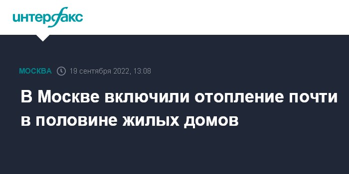 Москва. 19 сентября. INTERFAX.RU - Отопительный сезон в столице стартовал в полном объеме, тепло подается уже почти в половину жилых домов, заявил заместитель мэра Москвы Петр Бирюков журналистам в понедельник.