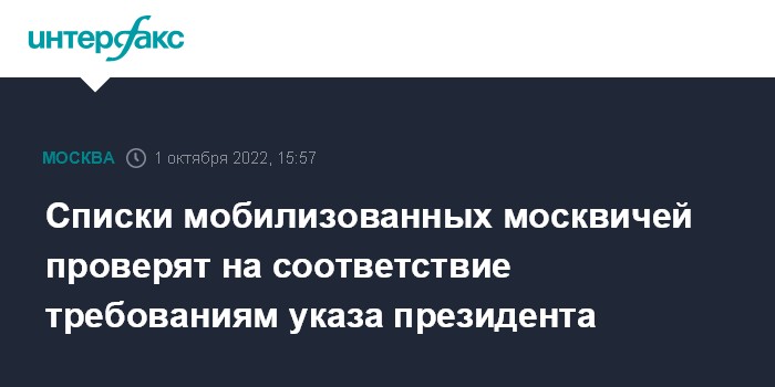 Москва. 1 октября. INTERFAX.RU - Списки мобилизованных москвичей проверят на соответствие федеральным требованиям, заявил в субботу мэр столицы Сергей Собянин.
