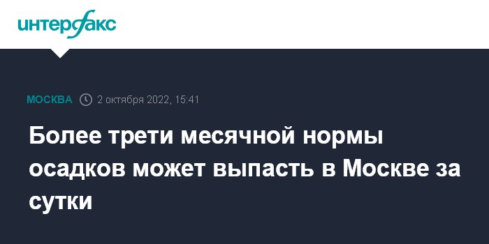 Более трети месячной нормы осадков может выпасть в Москве за сутки