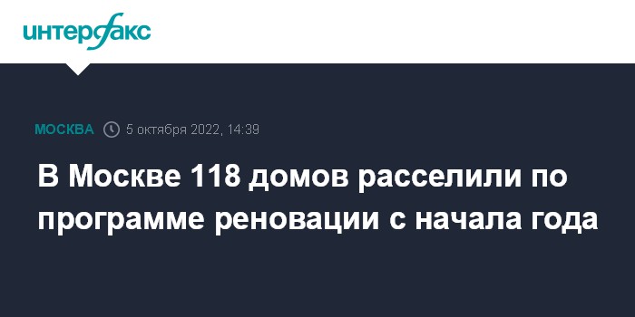 "С начала первых переездов по программе реновации в 2018 году, в Москве уже расселено 265 жилых домов, из которых 118 (более 40%) - результат девяти месяцев 2022 года", - говорится в сообщении.