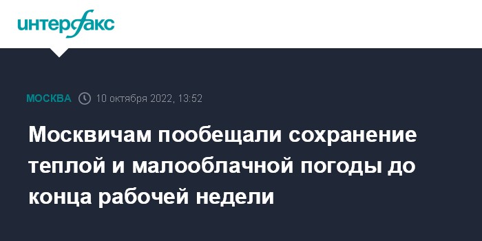 Москвичам пообещали сохранение теплой и малооблачной погоды до конца рабочей недели