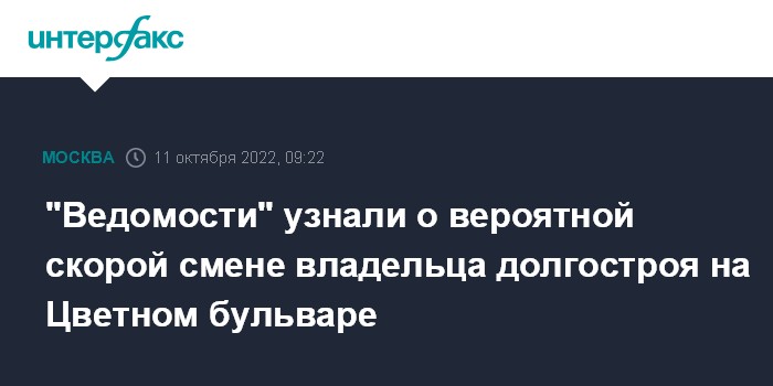 "Ведомости" узнали о вероятной скорой смене владельца долгостроя на Цветном бульваре