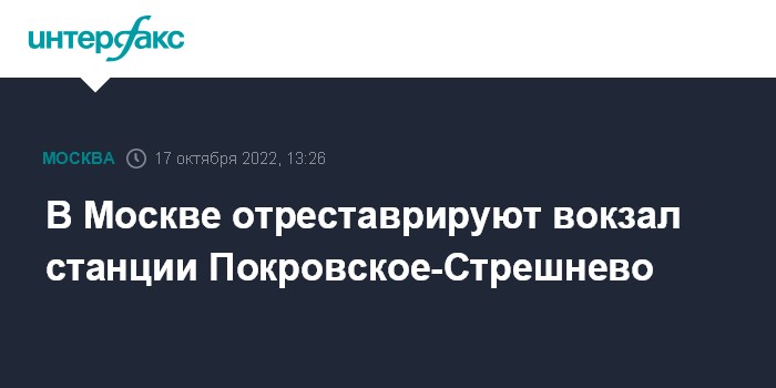 Москва. 17 октября. INTERFAX.RU - В Москве в 2023 году начнут реставрацию исторического здания железнодорожного вокзала на станции Покровское-Стрешнево, сообщили в Мосгорнаследии.
