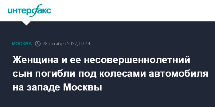 Женщина и ее несовершеннолетний сын погибли под колесами автомобиля на западе Москвы