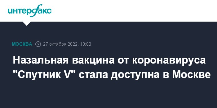 Москва. 27 октября. INTERFAX.RU - Возможность привиться от COVID-19 назальным вариантом вакцины "Спутник V" появилась в Москве, сообщила заммэра столицы по вопросам социального развития Анастасия Ракова.