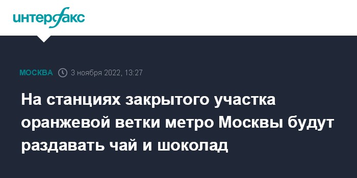 На станциях закрытого участка оранжевой ветки метро Москвы будут раздавать чай и шоколад