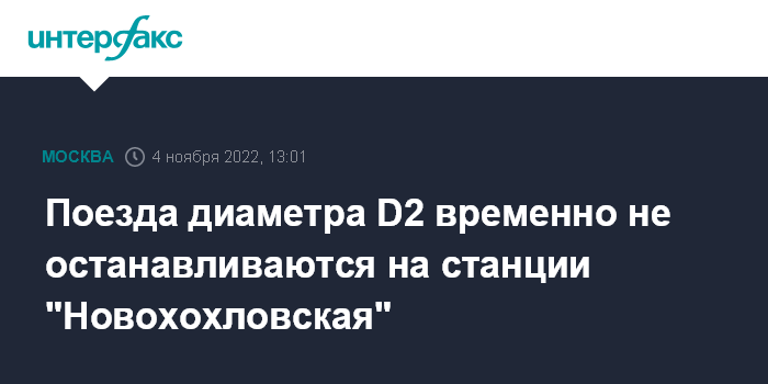 Поезда диаметра D2 временно не останавливаются на станции "Новохохловская"