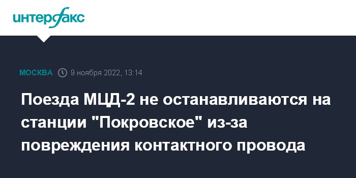 Поезда МЦД-2 не останавливаются на станции "Покровское" из-за повреждения контактного провода