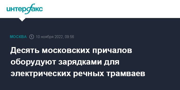 Москва. 10 ноября. INTERFAX.RU - Специалисты продолжают мероприятия по обеспечению энергоснабжения зарядных станций для новых электрических речных трамваев в столице, сообщил заместитель мэра Москвы Петр Бирюков в четверг.