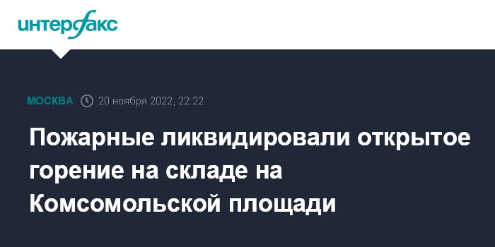 Москва. 20 ноября. INTERFAX.RU - Пожарные потушили открытое горение на крупном пожаре на Комсомольской площади в центре Москвы, сообщила пресс-служба МЧС России в воскресенье.