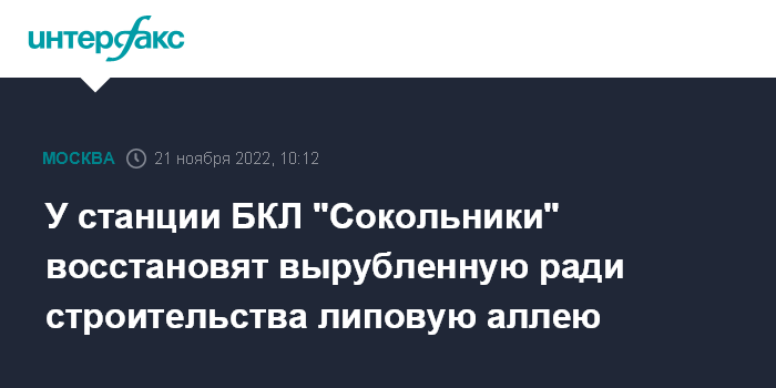 "Раньше на исторической площади, ведущей от улицы Русаковской к главному входу в парк "Сокольники", располагалась липовая аллея, которую пришлось вырубить на время строительных работ северо-восточного участка Большого кольца. Теперь ее восстановят. (...) Всего будет посажено 95 лип сорта "Паллида", - сказал через пресс-службу заммэра Андрей Бочкарев.