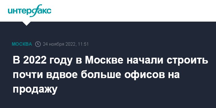 В 2022 году в Москве начали строить почти вдвое больше офисов на продажу