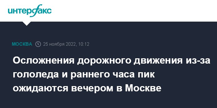 Москва. 25 ноября. INTERFAX.RU - Ситуация на дорогах вечером в Москве ухудшится из-за гололедицы и раннего часа пик, сообщает столичный департамент транспорта.