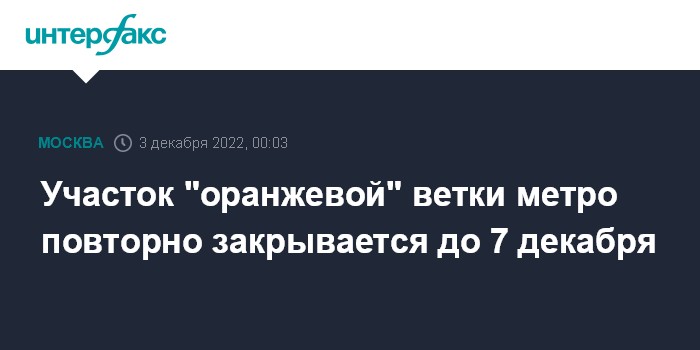 Участок "оранжевой" ветки метро повторно закрывается до 7 декабря