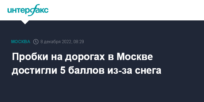 Пробки на дорогах в Москве достигли 5 баллов из-за снега