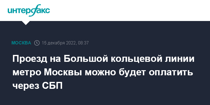 Проезд на Большой кольцевой линии метро Москвы можно будет оплатить через СБП