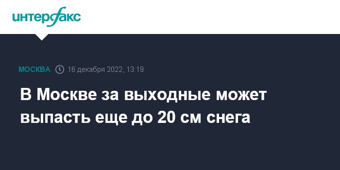 Москва. 16 декабря. INTERFAX.RU - В выходные синоптики прогнозируют в столичном регионе очередной снегопад, в Москве может выпасть до 20 см снега, предупредил заммэра столицы Петр Бирюков через телеграм-канал комплекса городского хозяйства.