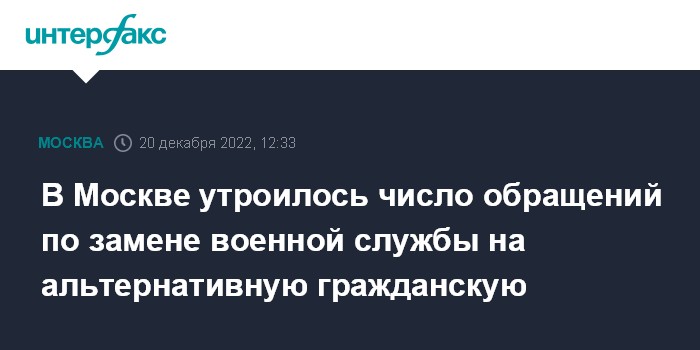 Москва. 20 декабря. INTERFAX.RU - Количество обращений к уполномоченному по правам человека в Москве Татьяне Потяевой по вопросам перехода на альтернативную гражданскую службу (АГС) в этом году выросло с 30 до более чем 100.