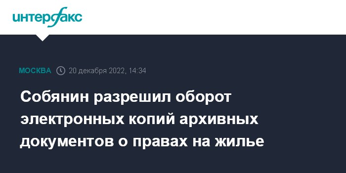 Собянин разрешил оборот электронных копий архивных документов о правах на жилье