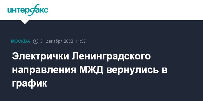 Москва. 21 декабря. INTERFAX.RU - На Ленинградском направлении Московской железной дороги полностью восстановлен график движения электричек, сообщил столичный Департамент транспорта.