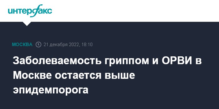 Москва. 21 декабря. INTERFAX.RU - Ситуация с заболеваемостью гриппом и ОРВИ в столице стабилизируется, но остаётся выше эпидемических пороговых значений, сообщает пресс-служба московского Роспотребнадзора.