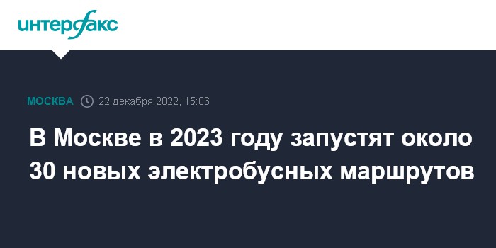 Москва. 22 декабря. INTERFAX.RU - Около 30 новых электробусных маршрутов планируется запустить в Москве в следующем году, власти столицы закупят около тысячи новых электробусов. Об этом сообщил телеграм-канал департамента транспорта Москвы со ссылкой на заммэра города по вопросам транспорта Максим Ликсутов.