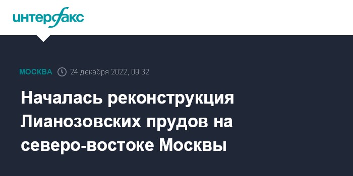 Москва. 24 декабря. INTERFAX.RU - Стартовали работы по реконструкции каскадной системы Среднего и Нижнего Лианозовских прудов, расположенных в одноименных ландшафтном заказнике и парке отдыха, сообщил заместитель мэра Москвы Петр Бирюков журналистам в субботу.
