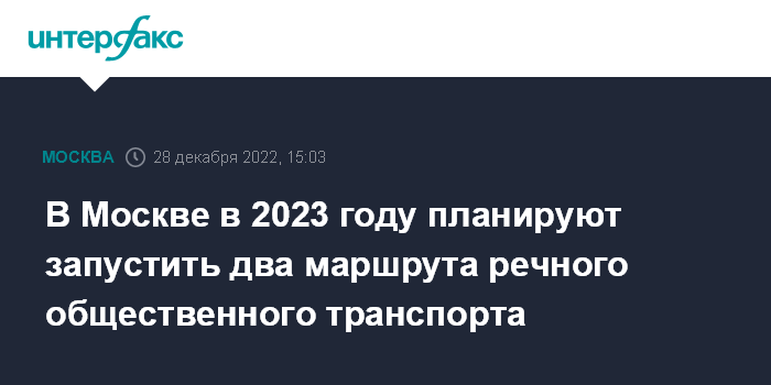 Москва. 28 декабря. INTERFAX.RU - В 2023 году в Москве планируется запустить два круглогодичных речных маршрута электрических пассажирских судов, сообщил заммэра столицы Максим Ликсутов.