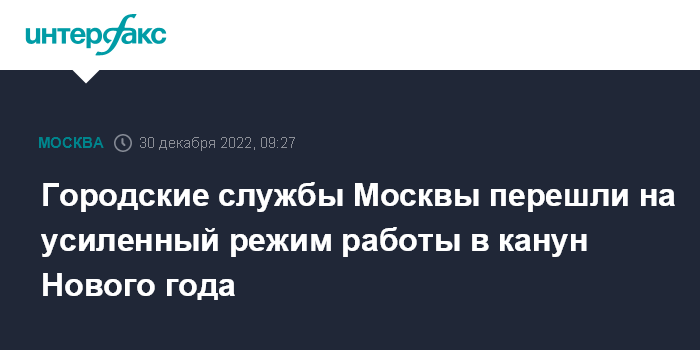 Городские службы Москвы перешли на усиленный режим работы в канун Нового года