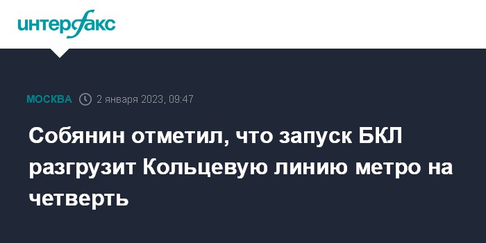 Москва. 2 января. INTERFAX.RU - Запуск Большой кольцевой линии метро в 2023 году снизит нагрузку на Кольцевую линию на 25%, сообщил в понедельник мэр Москвы Сергей Собянин.