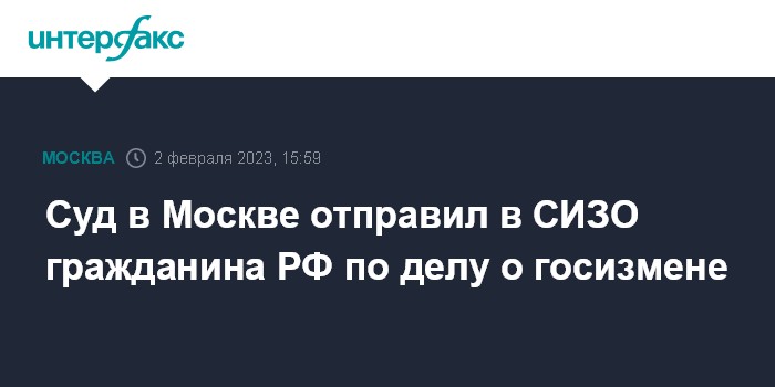 Москва. 2 февраля. INTERFAX.RU - Лефортовский суд Москвы по ходатайству следствия заключил под арест гражданина РФ, задержанного по уголовному делу о государственной измене.