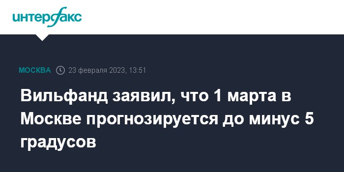 Вильфанд заявил, что 1 марта в Москве прогнозируется до минус 5 градусов